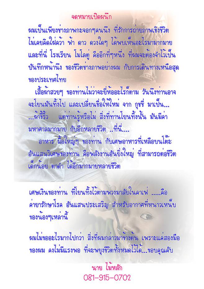 ขอบคุณ คุณ ไม้หลัก ผู้ถ่ายภาพและนำส่งต่อเรื่องราว