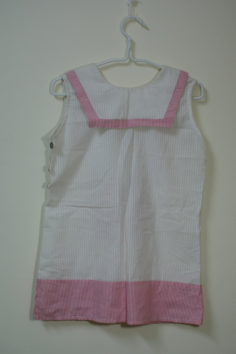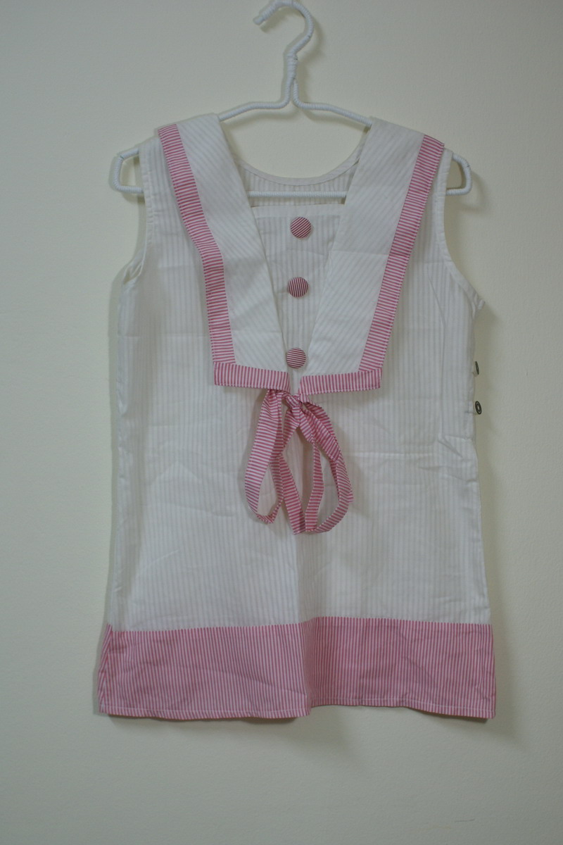 เสื้อแขนกุดสีขาว มีปกคล้ายทหารเรือ Size : shoulder 13", bust 36", lenght 26"