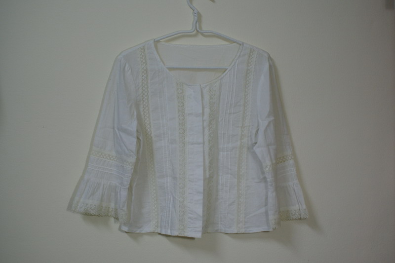 เสื้อแขนยาวสีขาว แต่งลูกไม้ Size : shoulder 16", bust 32", lenght 19"