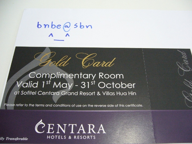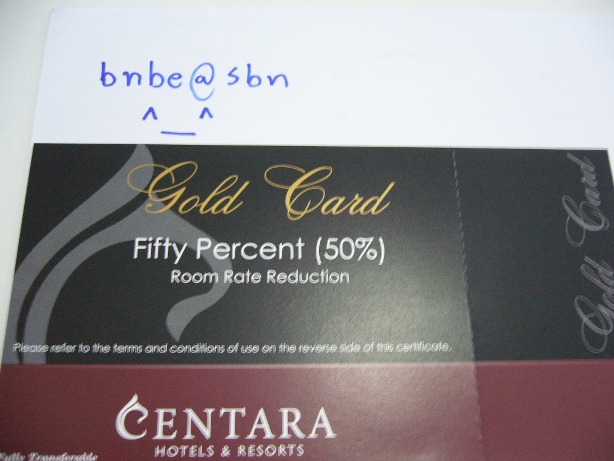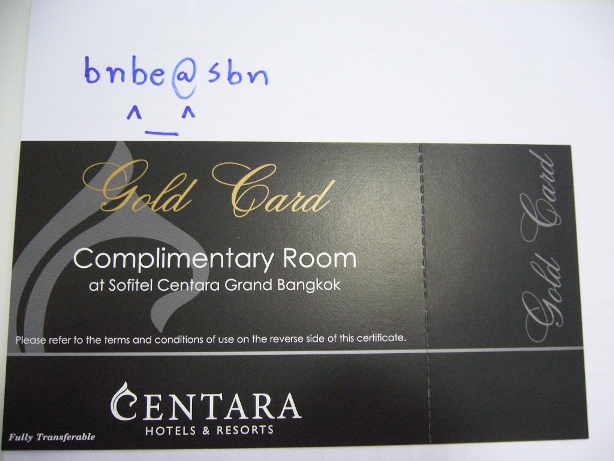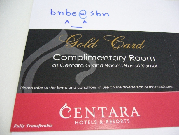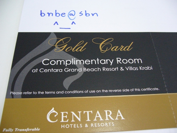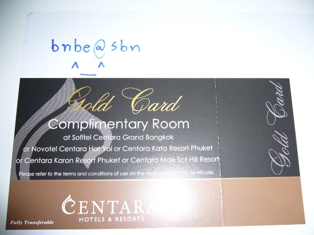 ooOOoo บัตรห้องพัก Voucher Centara Gold Card โรงแรมรีสอร์ทหรู 5 ดาวในเครือเซ็นทรัลหลายแห่งทั่วประเทศ ในราคาประหยัดและตรงจุดมุ่งหมายกว่าโดยไม่ต้องสมัครสมาชิคในราคาสูงแต่สามารถใช้สิทธิประโยช์จากบัตรนี้ได้เหมือนกัน บัตรใช้ได้อีกนานถึง 28 ธ.ค. 2010 ooOOoo