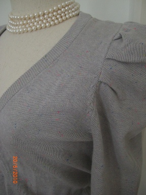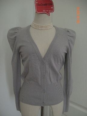H&M คาร์ดิแกนไหล่ตั้งสีเทา เนื้อผ้ามีลายจุดสีๆ ใส่แล้วน่ารักมากคะ