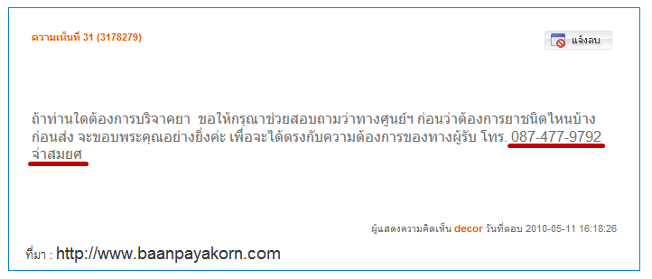 และขอบคุณข้อมูลสำหรับติดต่อกับทางโน้น เพื่อทำให้ได้ทราบว่าเขาขาดแขลนยาตัวไหน