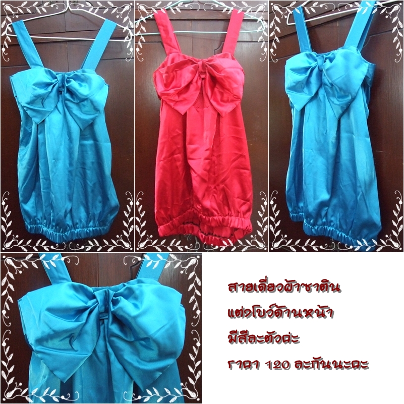 #2 เสื้อสายเดี่ยวผ้าซาติน นิ่มๆ ค่ะ มี 2 สีนะคะ เป็นสีน้ำเงิน กับสีแดง ตามภาพ ประดับโบด้านหน้า เหมาะสำหรับสาวไซส์เล็ก ช่วยให้ดูดีขึ้นค่ะ ลดราคาเหลือ ตัวละ 100 ค่ะ ใหม่ ไม่เคยใส่&ซักเลยค่ะ