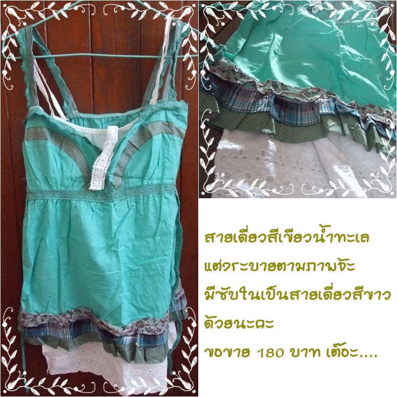 #3 เสื้อสายเดี่ยว ผ้าฝ้าย ตกแต่งลูกไม้ มีตัวเดียวค่ะ ราคาตัวละ 120 ค่ะ ใหม่ ไม่เคยใส่&ซักเลยนะคะ