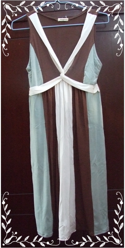 #7 ชุดแซกสีน้ำตาล คอวี ตกแต่งลายตัดต่อด้านหน้าสีเขียวน้ำทะเลและสีขาว ผ้ายืดนิ่มๆ ค่ะ ความยาวประมาณเข่า (เราสูง 156 ซม. นะคะ) ขอขาย 220 ค่ะ ใหม่มือ 1 ไม่เคยใส่&ซักค่ะ