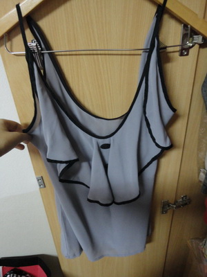 USED!! เสื้อกล้าม สีเทา ซีทรู ผ้าชีฟอง ใส่สบายคะ ตัวนี้ใส่มาสวยมาก ข้างหลังเว้าหลังค่ะ Sale >> 230