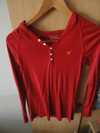 เสื้อยืดแขนยาวสีแดง ใส่สบายมากคะ มีฮู้ดข้างหลัง 150
