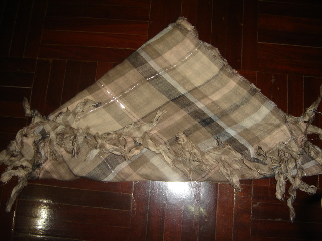 ผ้าพันคอลายสก๊อตสีเหลือบๆเทาๆ ราคา 200คะ