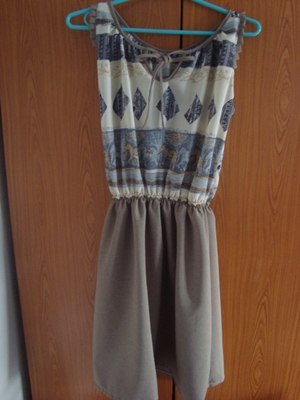 เสื้อยาวหรือเดรสแขนกุด ลายขวางสีน้ำตาล ทรงปล่อยคะ