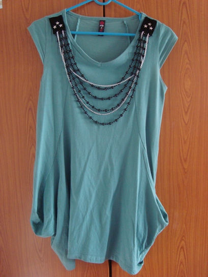 เสื้อตัวยาว แขนกุด ตกแต่งด้วยสร้อยสวยๆ เก๋มากคะ