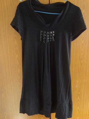 เสื้อยาวหรือเดรสสีดำ คอปักลูกปัดสีดำเงาๆสวยมากๆคะ