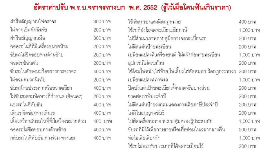 ค่าปรับจราจรทางบกจ้า รู้ไว้ก้อดีนะ เผื่อโดนตำรวจโกงราคา คริคริคริ