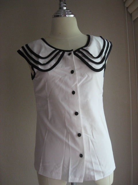 เสื้อผ้าลื่น(ไม่ใช่ซาตินนะคะ จะกึ่ง ๆชีฟองแต่หนากว่า) กระดุมผ่าหน้ามีเลเยอร์ที่คอขลิบขอบสีน้ำเงินเข้มตัวเสื้อสีขาว นวล ๆ ไซส์ s m ใส่ได้คะ ราคา 350 บาท