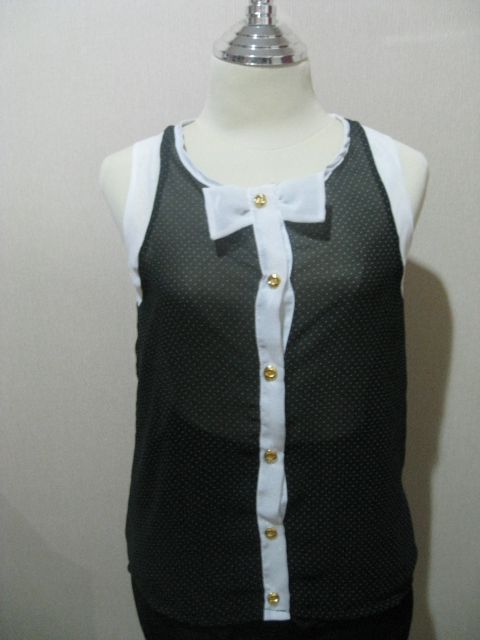 แขนกุดชีฟองลายจุดที่คอเป็นโบว์น่ารักดีค่ะใส่กะขาสั้น ๆหน่อยเจิดมาก ๆค่า ราคา 380 บาท Sale 300