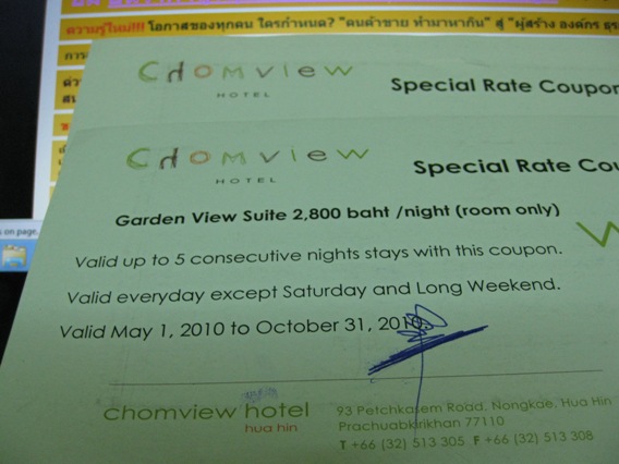 มีคูปองที่พัก ชมวิวรีสอร์ท หัวหิน ได้มาแล้วไม่มีโอกาสได้ไป ใช้ได้ถึง 31 ต.ค. 53 ค่ะ