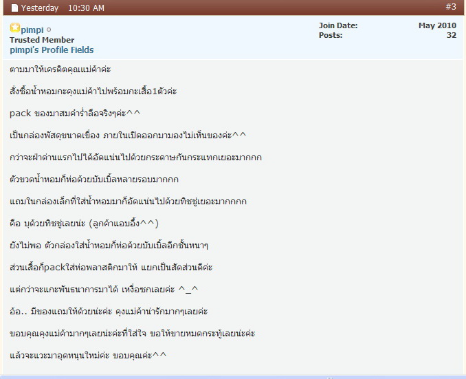 *** ด้านล่างนี้ลูกค้าผู้ใจดีเขียนให้เครดิตมาค่ะ...***
