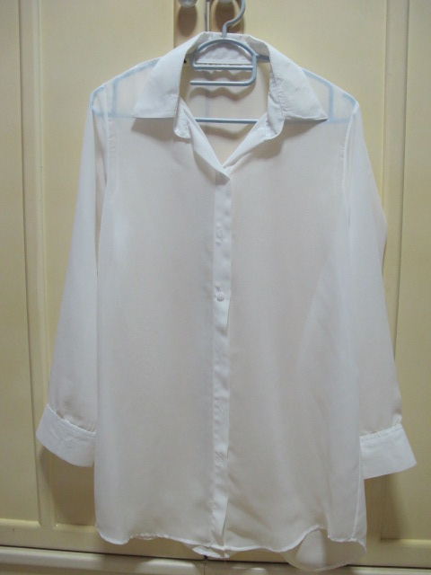 เสื้อเชิ้ตผ้าชีฟองสีขาว จากสยาม คัตติ้งดีมาก ขาย 500 บาท