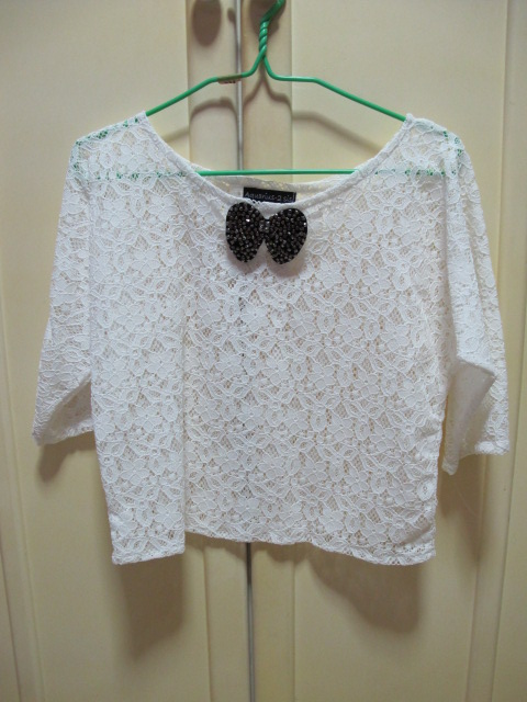 crop ลูกไม้ประดับโบว์ที่หน้าอก ขาย 250 บาท