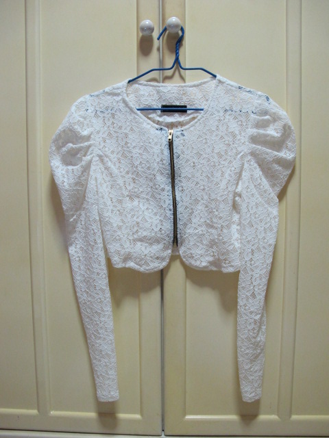 เสื้อคลุมแขนยาวลายลูกไม้ ซิบสีทอง ขาย 250 บาท