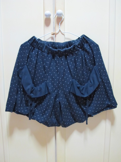 กางเกงสีน้ำเงิน ลายดาวเล็กๆ พองๆคล้ายกระโปรง เอวฟรีไซต์ ขาย 250 บาท