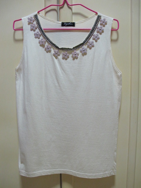 เสื้อแขนกุด ประดับดอกไม้รอบคอ ขาย 250 บาท