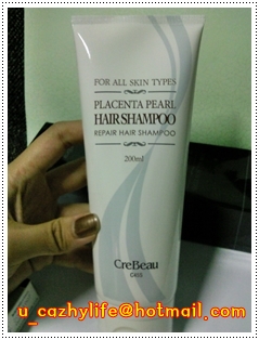 - CreBeau Hair Shampoo (มือหนึ่ง) แชมพูที่มีส่วนผสมของรกแกะและไข่มุก