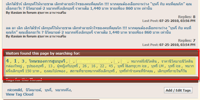 จากข้อ 3 ซึ่งอาศัย "Visitors found this page by searching for" ที่อยู่ตอนล่างของหน้ากระทู้
