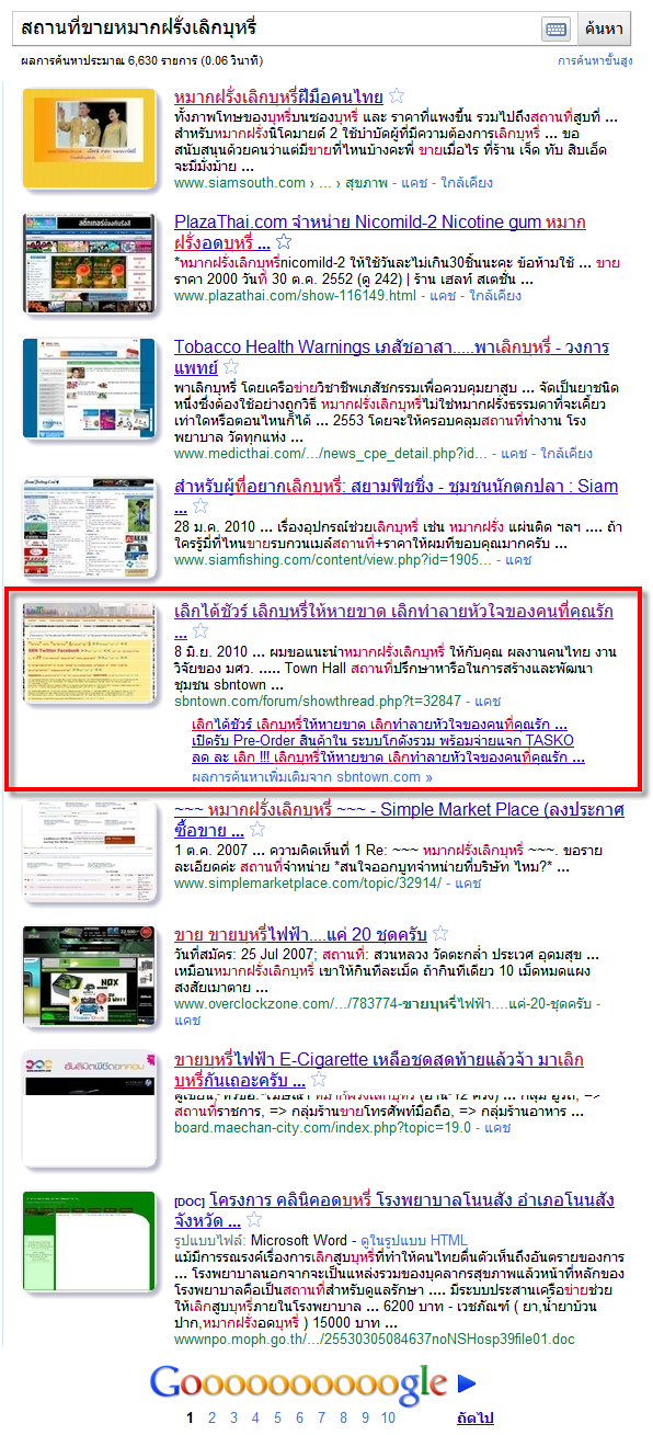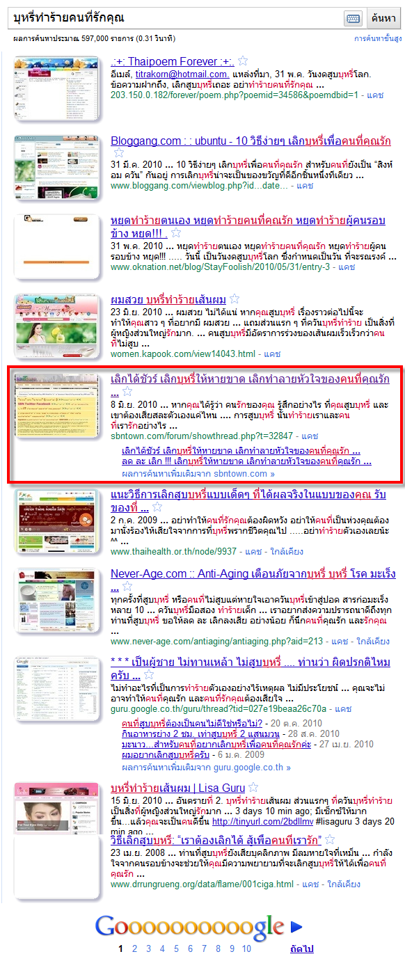 ซึ่งหลายๆ คำค้นหา จะเห็นว่า กระทู้ของผม ขึ้นปรากฏในหน้าแรก เช่น