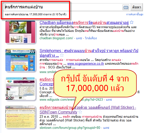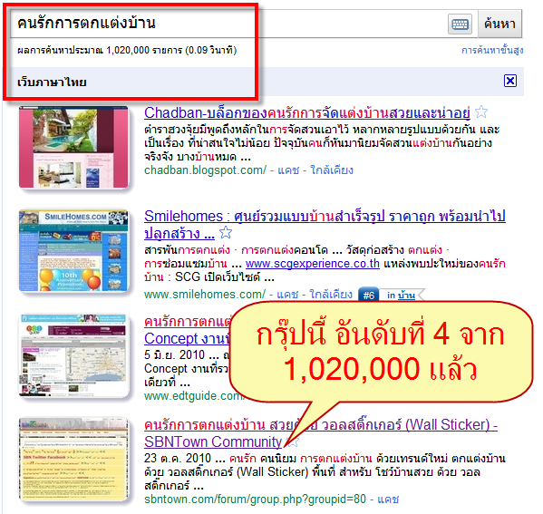 และได้เห็นผลทันตาเห็น คือ เมื่อผมค้นหาด้วยคำว่า "คนรักการตกแต่งบ้าน" พบว่า
