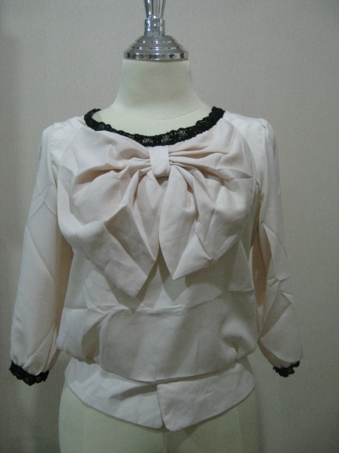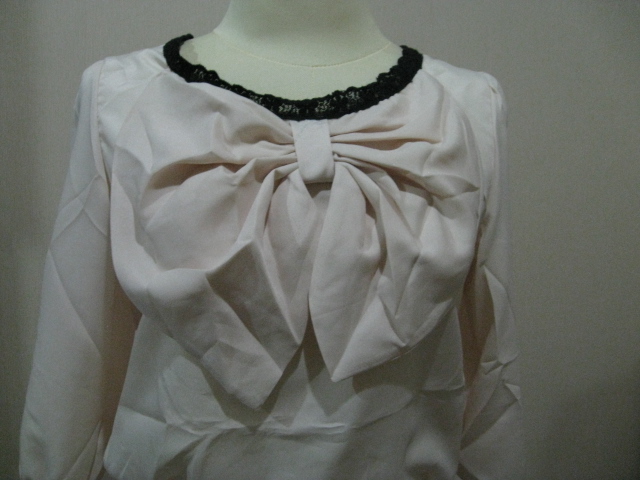 เสื้อโบว์มาใหม่คะใส่ได้สองด้านออกแนววินเทจสีครีมนวล ๆ ราคา 350 บาท