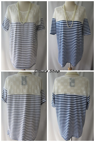 NJ 1.29 เสื้อลายทาง+ผ้าลูกไม้ถักช่วงบนเป็ฯลายดอกไม้ดอกเล็ก ๆ เรียงตัวกันกักตารางถักถี่ เนื้อลูกไม้ถักหนาคะ ตัวเนื้อผ้าด้านล่างก็ดี๊ๆ อีกแล้ว ไม่ยับง่าย ใส่แล้วไม่ร้อน ไม่คันนะจ้ะ