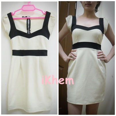 เดรสบอดี้คอน สีเหลืองอ่อนขลิบดำ แขนตุ๊กตา ด้านหลังเป็นซิปยาว ผ้าหนา หน้าอกได้ไม่เกิน 33 เอวไม่เกิน 27 สะโพกไม่เกิน 37 ใส่สวยมากมาย มือสองราคา 180 บาท