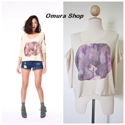 NJ 1.24 จี๊ดดดเอามาก ๆ คะ เสื้อเว้าไหล่สกรีนลายไม่ซ้ำใคร แขนประมาณสามส่วนคะ ใส่กับกางเกงสั้นขาด ๆ โอ๊ะโอววววดูเท่ห์+เปรี้ยว+เซ็กซี่เล็ก ๆ ได้ทุกแนว