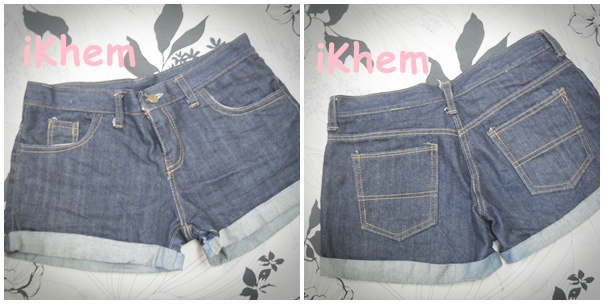 กางเกงยีนส์ขาสั้น สีเข้ม พับขา เอวประมาณ 27 นิ้ว มือสอง ราคา 100 บาท