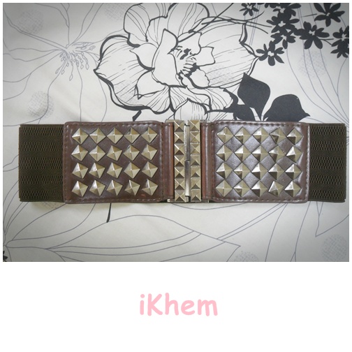 เข็มขัดสีน้ำตาล (เป็นยางยืด) ตกแต่งหมุด ของใหม่ ราคา 150 บาท