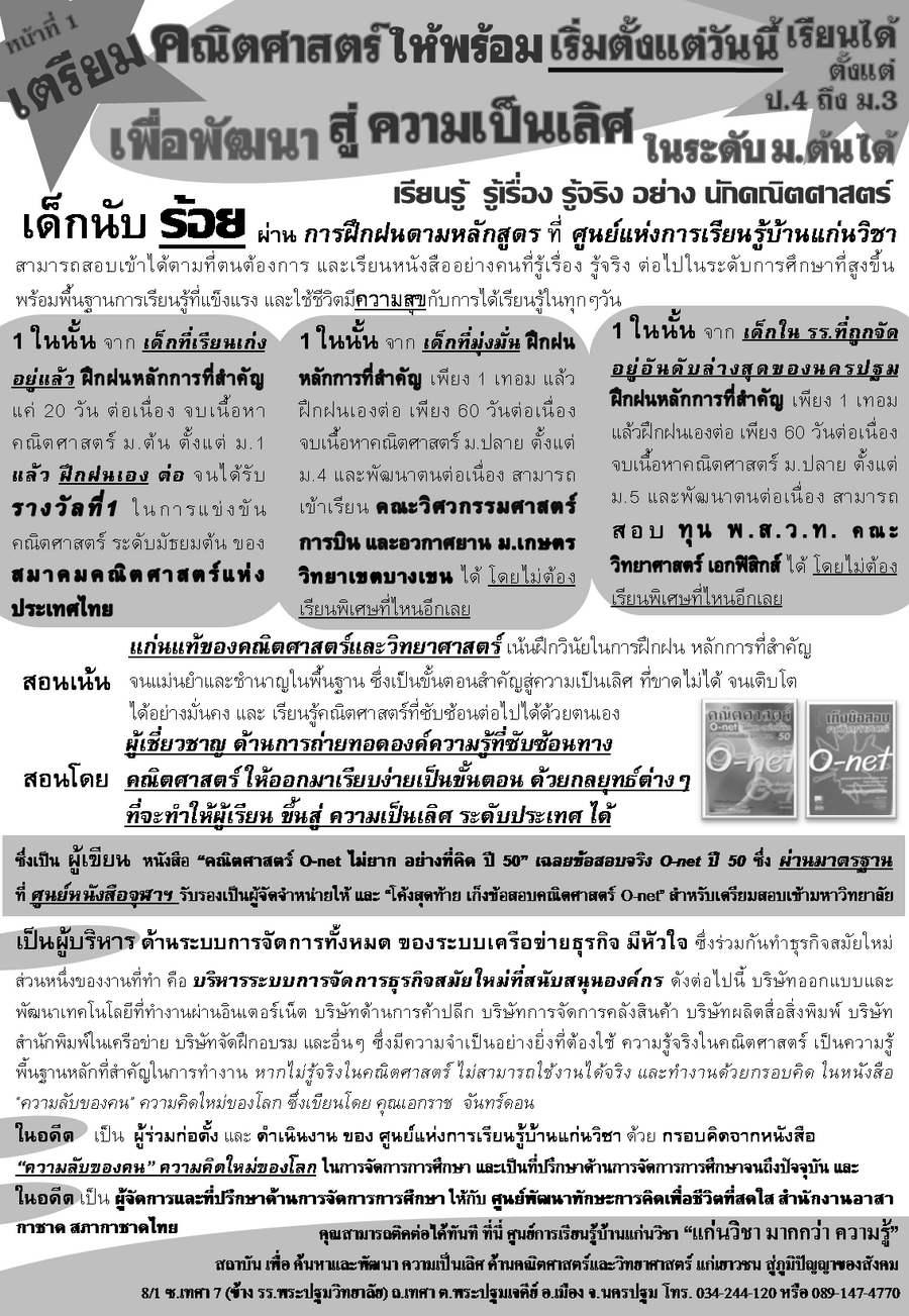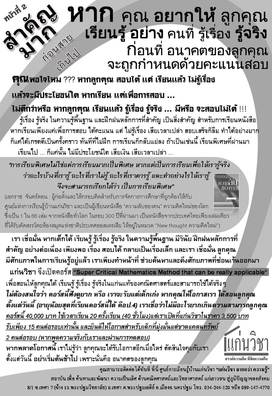 และหาที่เรียนพิเศษ ดีๆ นครปฐม คณิตศาสตร์ เรียนอย่างไร ประสบความสำเร็จ แก่นวิชา มากกว่า ความรู้