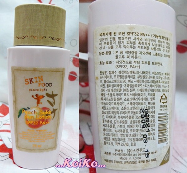 Skinfood ::: Peach Sake Sun Lotion SPF32 PA++ 75ml. 300 บาท