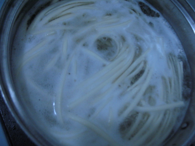 อุด้ง ใช้เวลาลวกเส้นนานมากๆ เลยครับ ประมาณ 40 นาที จึงได้ตามภาพที่เห็นครับ