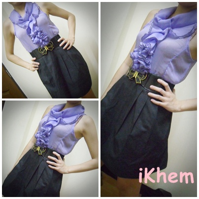 เดรสทำงานช่วงเสื้อเป็นผ้าชีฟองสีม่วง แขนกุดตกแต่งระบายช่วงหน้าอก กระโปรงทรงทิวลิป ของใหม่ยังไม่เคยซัก ไม่เคยใส่ (ไม่รวมเข็มขัด)ราคา 180 บาท