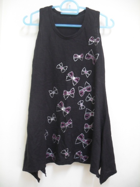 เสื้อกล้ามสีดำ(มือสอง) สกรีนลายโบว์วิ้ง วิ้ง ราคา 100 บาท
