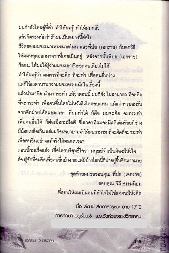 จากปกหลังหนังสือ "อ่านก่อนที่ชีวิตจะหมดความหมายไปมากกว่านี้" เขียนโดย คุณเอกราช จันทร์ดอน