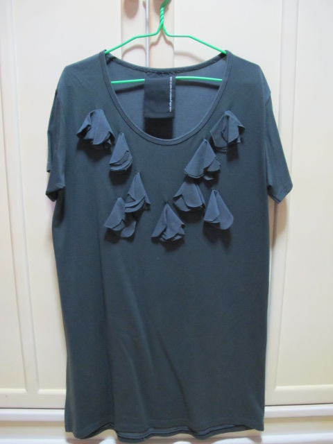 เสื้อแขนกุด ประดับดอกไม้รอบคอ ขาย 250 บาท