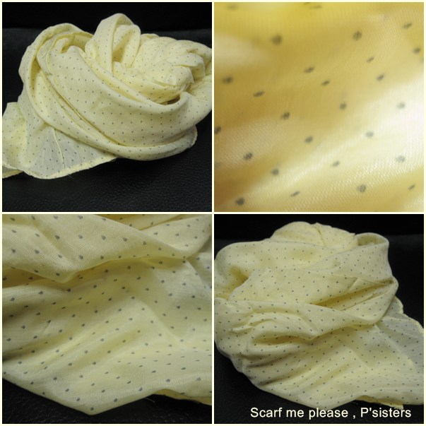 2. ผ้าพันคอลายจุดสีเหลือง เนื้อดี ผ้าเนื้อนี้เหมาะสำหรับการทำเป็นผ้าโพกหัว หรือจะเป็นผ้าผันคอก็อุ่นนะคะ