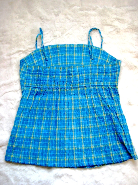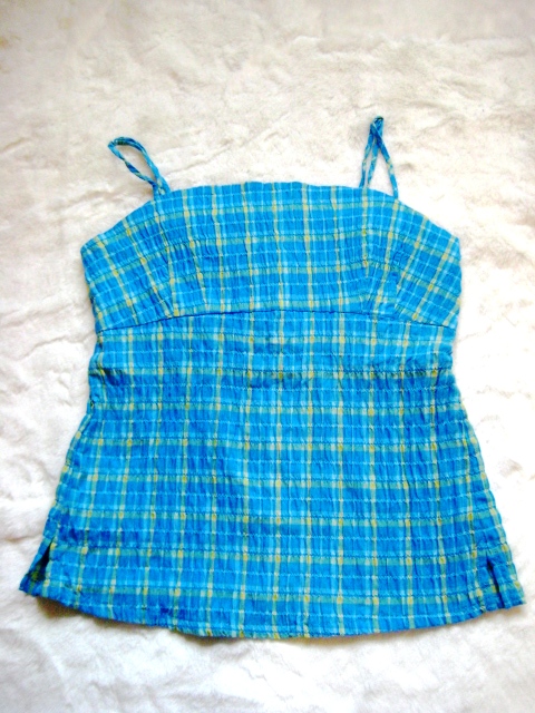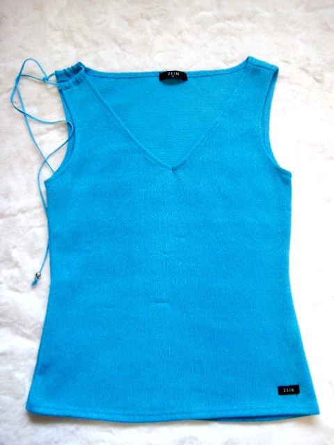 26) เสื้อ แขนกุด สีฟ้ายี่ห้อ ZEIN ตรงไหล่ มีสายผูกปม ผูกโบได้นะคะ