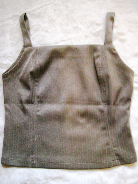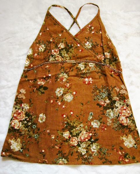 7) สายเดี่ยวผ้าทอสีน้ำตาล(ไล่สี) มีดิ้นแทรก เอาไว้ใส่ด้านในแล้วใส่ Jacket ทับ