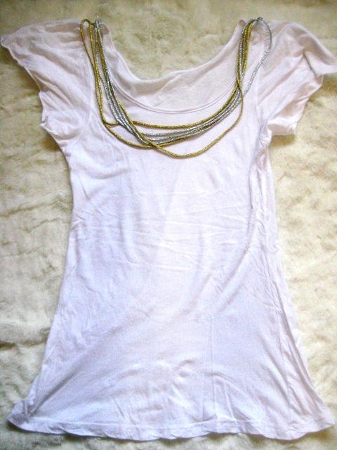 15) เสื้อยืดสีขาวตัวยาว คอมีประดับดิ้นเงิน-ทอง ซื้อสยามใส่ 2 ครั้ง