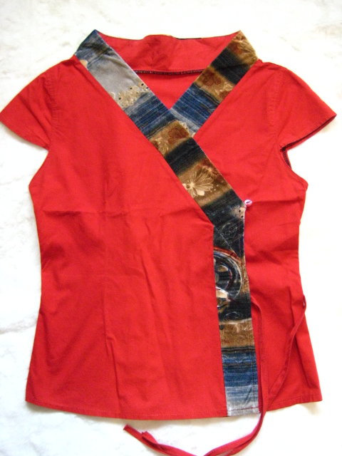 23) เสื้อสีแดง ทรงญี่ปุ่น ช่วงคอแต่งกำมะหยี่ น่ารักมากใส่แล้วขับผิวสุดๆ