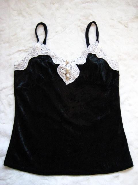 27) เสื้อสายเดี่ยวกำมะหยี่สีดำ ซื้อสิงคโปร์ ไม่เคยใส่เลยคะ