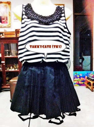 2.เสื้อประดับมุก ราคา 435฿ เสื้อลายขาวดำ คอเสื้อประดับมุก ดูหรูมาก (รูปตามภาพด้านบน)