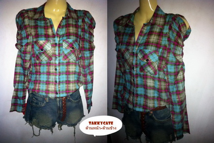 เสื้อเชิ้ตลายตาราง ผ้าเนื้อดี ดีเกลเก๋มาก ผ่าไหล่นิดนึง ใส่สบาย งานหรู ไม่ซ้ำใคร